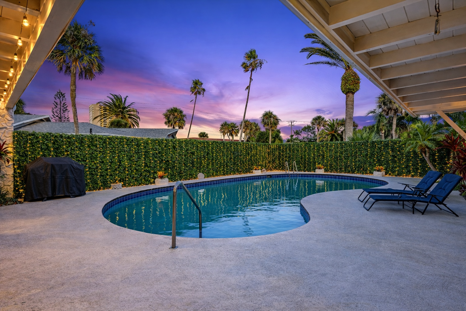 Home is in Daytona Beach Shores/ Port Orange. Just a 3 min walk to the beach and a short 10 min drive to Daytona Main Street and the Most Famous Beach in the WORLD! Large Entertaining Pool area with a Beachy Tropical Atmosphere that is relaxing and peaceful. Perfect for having dinner outdoors, basking in the sunshine, or reading a book in the large shaded area.